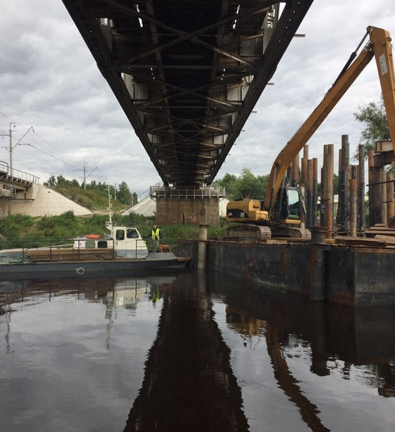 - Подготовка к строительству какого-либо гидротехнического объекта (например, моста, причала и т. д.).