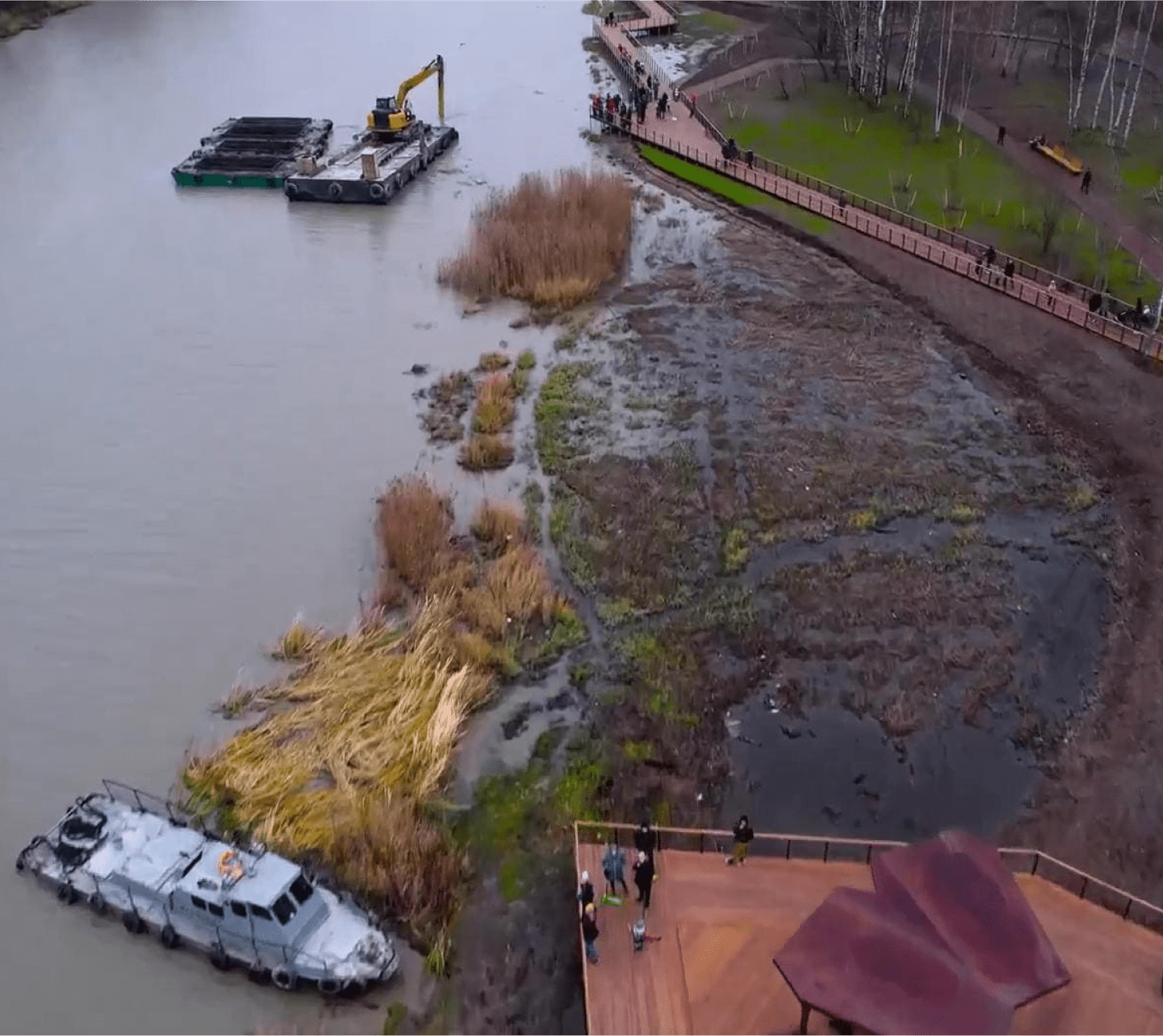 Задача восстановления нормального состояния водоема (например, русла реки) решается профессиональными средствами дноуглубления и расширения береговой линии. Для этого применяется специализированная техника, позволяющая извлекать грунт и отложения из-под воды. Работы могут выполняться как с берега, так и непосредственно с плавучей платформы.